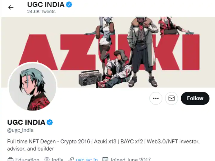UGC India Official Twitter Account Hacked : विद्यापीठ अनुदान आयोगाचे (UGC) अधिकृत ट्विटर अकाउंट हॅक झालं आहे. UGC इंडियाच्या ट्विटर हँडलचा डीपी आणि बॅकग्राउंडचा फोटो बदलण्यासोबतच, हॅकर्सनी शेकडो ट्विटर युजर्सना टॅग करत एकापाठोपाठ एक ट्वीट केले. अकाउंट हॅक करणाऱ्याने एक ट्वीट पिन देखील केलं, ज्यामध्ये लिहिलं होतं की, "Beanz अधिकृत संग्रहणाच्या प्रकटीकरणाच्या स्मरणार्थ, आम्ही समुदायातील सर्व सक्रिय NFT व्यापार्यांसाठी पुढील 24 तासांसाठी एक एअरड्रॉप उघडला आहे. आपल्या Beanz चा दावा करा. गार्डनमध्ये तुमचं स्वागत आहे."