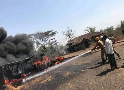 मालपे-विर्नोडा या भागात अनेक वर्ष पडून असलेल्या वाहनांना भीषण आग लागली आहे.