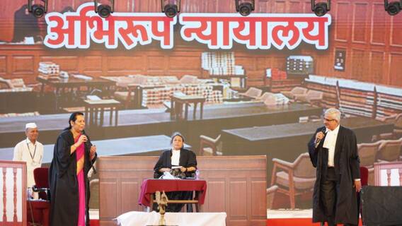 Marathi Sahitya Sammelan जळगाव : 97 वे अखिल भारतीय मराठी साहित्य संमेलनात (97th Akhil Bhartiya Marathi Sahitya Sammelan) खान्देशकन्या बहिणाबाई चौधरी सभागृहात आज विधानपरिषदेच्या उपसभापती डॉ. नीलम गोऱ्हे (Dr Neelam Gorhe) यांच्या प्रमुख उपस्थितीत व न्यायमूर्ती मुदृला भाटकर यांच्या अध्यक्षतेखाली 'अभिजात मराठी भाषेचा योग्य उपयोग करण्यासाठी मराठी व्यवहाराची विविध क्षेत्रे सज्ज आहेत का?' याविषयावर आगळेवेगळे अभिरूप न्यायालय पार पडले.
