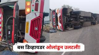 चालकाचं नियंत्रण सुटलं अन् बस डिव्हायडर ओलांडून उलटली