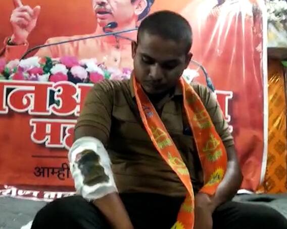 जळगाव : शिवसैनिक मेळाव्यासाठी दुचाकीवरुन निघाला.. मात्र रस्त्यातच त्याचा दुचाकीचा अपघात झाला...यात त्याचा हात मोडला तर दुसऱ्या हाताला गंभीर दुखापत झाली, तोंडाला, डोक्यालाही खरचटलं... तरीही तशाच अवस्थेत हा शिवसैनिक मलमपट्टी करत थेट मेळाव्यात पोहोचला...हे कुठल्या सिनेमाचा कथानक नाही तर ही आहे खरीखुरी आणि प्रत्यक्षात घडलेली गोष्ट. जळगाव जिल्ह्यातील पारोळा तालुक्यात चित्रपटाच्या कथानकाप्रमाणे असलेल्या या घटनेचा प्रत्यय आला. यातील शिवसैनिक तरुणाच्या धडपडीचं नेमक कारण म्हणजे... त्याला मेळाव्यात तो बंडखोरांच्या नव्हे तर आपले नेते शिवसेनाप्रमुख उद्धव ठाकरे यांच्यासोबत असल्याचं तसेच मी खरा शिवसैनिक असल्याचं सिद्ध करायचं होतं.