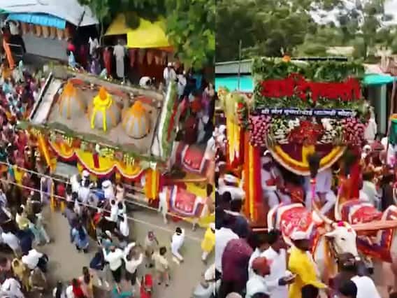 Sant Muktai Palkhi : आषाढी एकादशीच्या निमित्ताने पंढपुरात गेलेली संत मुक्ताईंची (Sant Muktai) पालखी पंचेचाळीस दिवसांचा प्रवास करुन आज पुन्हा जळगावात संत मुक्ताबाईंच्या समाधी स्थळी पोहोचली आहे. आषाढी एकादशीच्या निमित्ताने संत मुक्ताईंची पालखी पंढपुराच्या दिशेने प्रस्थान करते. आषाढी एकादशीनिमित्ताने शेकडो दिंड्या आणि लाखो वारकरी पंढरपुराच्या दिशेने मार्गक्रमण करतात. त्यानंतर, आषाढी एकादशीनंतर पालखी पुन्हा एकदा समाधीस्थळाकडे प्रस्थान करत जळगावात परतली आहे. मोठ्या उत्साहात आणि भक्ती भावाने मुक्ताई नगरच्या नागरिकांकडून या पालखीचे जळगावमध्ये स्वागत करण्यात आले आहे.
