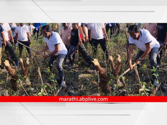 Jalna News : नेहमी कोणत्या ना कोणत्या कारणाने चर्चेत राहणारे भाजप नेते आणि केंद्रीय मंत्री रावसाहेब दानवे (Raosaheb Danve) पुन्हा एकदा आपल्या साधेपणामुळे चर्चेत आले आहेत. कारण रोज हिरवा झेंडा दाखवून आणि फीत कापून विविध विकास कामांचे उद्घाटन करणाऱ्या रावसाहेब दानवे यांच्या हातात चक्क कुऱ्हाड पाहायला मिळाली. रविवारी दानवे यांनी हातात कुऱ्हाड घेवून थेट जालन्यातील घाणेवाडी (ता.जालना) येथील संत गाडगेबाबा जलाशय गाठले. तर जलाशयाच्या भिंतीवरील काटेरी झुडपे कुऱ्हाडीने तोडली. विशेष म्हणजे, या प्रकल्पाची भिंत स्वच्छ करण्यासाठी लोकसहभागातून काम सुरू असून, त्यानिमित्ताने श्रमदान मोहिमेत रविवारी दानवे यांनी सहभाग नोंदवून श्रमदान करत सामाजिक संघटनांच्या प्रयत्नांना प्रोत्साहन दिले.