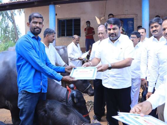 Kolhapur News : 'गोकुळ'कडून (Gokul) जातिवंत म्हैस पैदास केंद्र उभारणीचा उपक्रम हाती घेणार असल्याची माहिती आमदार सतेज पाटील (Satej Patil) यांनी दिली. या माध्यमातून चांगली जनावरे कोल्हापूर जिल्ह्यामध्येच मिळतील. भविष्यात सर्वांसाठी जातिवंत म्हशींची खरेदी-विक्रीचे बाजारपेठ उपलब्ध होईल, असेही त्यांनी सांगितले. सतेज पाटील यांनी सांगितले की, सध्या जिल्ह्यात दूध उत्पादकांना उच्च वंशावळीच्या जातिवंत म्हशी (मुऱ्हा, मेहसाणा जाफराबादी) खरेदी करण्यासाठी परराज्यांमध्ये जावे लागते. मागणी वाढल्याने जनावरांच्या किमतीही वाढत आहेत. यासाठी भविष्यात अशा प्रकारच्या जातिवंत दुधाळ म्हशी गोकुळ कार्यक्षेत्रात तयार व्हाव्यात यासाठी केंद्राची उभारणी करणार आहे.