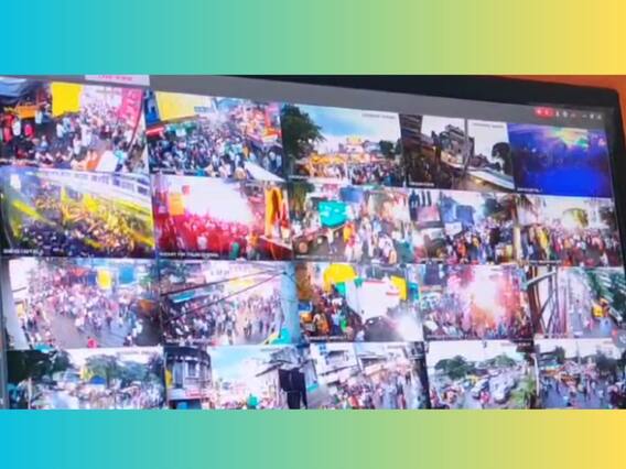 कोल्हापूर : गणेश विसर्जन मिरवणुकीत (Kolhapur Ganesh Darshan) कोणताही अनुचित प्रकार घडू नये यासाठी कोल्हापूर पोलिसांकडून (Kolhapur Police) तिन्ही मार्गांवर करडी नजर ठेवली आहे. कोल्हापूर पोलिसांकडून मुख्य विसर्जन मार्गासह, समांतर तसेच पर्यायी मार्गावर तब्बल 76 ठिकाणी सीसीटीव्ही तैनात करून विसर्जन मार्गावर करडी नजर ठेवली आहे. कोल्हापुरात सकाळी नऊ वाजल्यापासून विसर्जन मिरवणुकीला प्रारंभ झाला आहे. सायंकाळी सात वाजेपर्यंत कोणताही अनुचित प्रकार घडलेला नाही. पंचगंगा घाटावर एकही गणपती विसर्जनासाठी जाणार नाही, याची काळजी प्रशासनाकडून घेण्यात आली आहे.