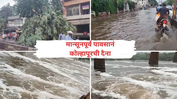 Kolhapur Rain Update : कोल्हापूर शहर आणि जिल्ह्याला गेल्या चार दिवसांपासून मान्सूनपूर्व पावसाने (Kolhapur Rain Update) झोडपून काढलं आहे. यामुळे कोल्हापूर जिल्ह्यामध्ये या पावसामुळे चांगलीच दैना झाली आहे. कोल्हापूर शहर परिसरामध्ये मंगळवारी सायंकाळी झालेल्या पावसाने अक्षरशः शहराला झोडपून काढले. अनेक ठिकाणी वृक्ष उन्मळून पडल्याने वीजपुरवठा खंडित झाला. त्यामुळे अनेक ठिकाणी वाहतूक ठप्प झाली. सकल भागांना तळ्याचे स्वरूप प्राप्त झालं होतं. महाद्वार रोडवर नवीन रस्त्यावर पाणी साचल्याने तळ्याचे स्वरुप प्राप्त झालं होतं. हाॅकी स्टेडियम ते विश्वपंढरी रोड सुद्धा ड्रेनेज फुटल्याने अक्षरश: तुंबला होता. त्यामुळे वाहनधारकांची कसरत सुरु होती. कोल्हापुरात तब्बल 35 ठिकाणी झाडे कोसळून रस्त्यावर पडली. जोरदार पावसाने कोल्हापुरातील परिख पूल सुद्धा तुंबला होता.