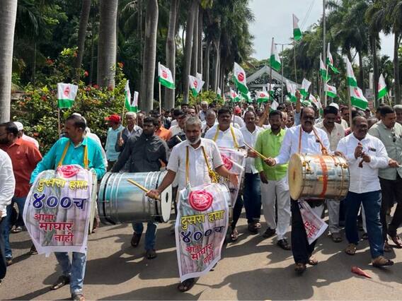 कोल्हापूर : गेल्यावर्षी तुटलेल्या उसाचा (Sugarcane) दुसरा हप्ता प्रतिटन 400 रूपये तातडीने द्या, अन्यथा गाठ स्वाभिमानीशी आहे, असा इशाराच स्वाभिमानी शेतकरी संघटनेनं (swabhimani shetkari sanghatana) ढोल बजाओ आंदोलन करत दिला. कोल्हापूर जिल्ह्यात (Kolhapur News) स्वाभिमानी शेतकरी संघटनेकडून आज (2 ऑक्टोबर) प्रत्येक कारखान्याच्या दारात ढोल बजाओ आंदोलन करण्यात आले. गुरूदत्त, जवाहर, पंचगंगा व शरद साखर कारखान्यावर ढोल बजाओ आंदोलन करून 400 रूपये तातडीने देण्याची मागणी करण्यात आली. ऊस निर्यातबंदी केल्यानंतर स्वाभिमानी शेतकरी संघटनेनं राज्य सरकारला निर्णय मागे घेण्यास भाग पाडले होते. आता गेल्यावर्षीच्या तुटलेल्या ऊसाच्या हिशेबावरून स्वाभिमानीने साखर कारखान्यांना धारेवर धरले आहे. त्यामुळे गळीत हंगामाच्या पार्श्वभूमीवर स्वाभिमानी शेतकरी संघटना आक्रमक भूमिका घेण्याची शक्यता आहे.