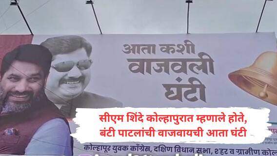 मुख्यमंत्री एकनाथ शिंदे यांनी कोल्हापूर काँग्रेस जिल्हाध्यक्ष आमदार सतेज पाटील यांच्यावर केलेल्या टिप्पणीनंतर कोल्हापुरात उपरोधिक आणि खोचक भाष्य करणारा बॅनर लावण्यात आला आहे. लोकसभा निवडणुकीमध्ये महायुतीचे मतदार संजय मलिक यांच्या प्रचारार्थ मुख्यमंत्री एकनाथ शिंदे यांनी सतेज पाटील यांना उद्देशून बंटी पाटलांची आता वाजवायची घंटी असं वक्तव्य केलं होतं.