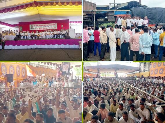 कोल्हापूर : संपूर्ण कोल्हापूर जिल्ह्यासह (Kolhapur News) पश्चिम पश्चिम महाराष्ट्राचे लक्ष लागून राहिलेल्या कसबा बावडा येथील श्री छत्रपती राजाराम सहकारी साखर कारखान्याची (Rajaram Sakhar Karkhana) वार्षिक सर्वसाधारण आज पार पडली. विरोधक आणि सत्ताधाऱ्यांच्या घोषणाबाजीमध्ये वार्षिक सर्वसाधारण सभा पार पडली. या सभेनंतर नाराज झालेल्या विरोधकांनी सभात्याग करत समांतर सभा घेत ठरावांची होळी केली. त्यामुळे कारखान्याची वार्षिक सर्वसाधारण सभा सुद्धा वादळी ठरली. आज पार पडलेल्या वार्षिक सर्वसाधारण सभेमध्ये कारखान्याचे कार्यक्षेत्र वाढवणे हा प्रमुख मुद्दा होता. 44 गावे नव्याने कारखाना कार्यक्षेत्रात वाढविण्यास विरोधी गटाकडून विरोध सुरु आहे. राजाराम कारखान्याचे अध्यक्ष अमल महाडिकांनी त्यंना पाच महिन्यांपूर्वी उत्तर सभासदाने दिल्याचा टोला लगावला.