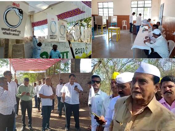 Rajaram Sakhar Karkhana : कोल्हापुरातील कसबा बावडा येथील श्री छत्रपती राजाराम सहकारी साखर कारखान्याच्या पंचवार्षिक निवडणुकीसाठी आज (23 एप्रिल) सकाळपासून मतदानास प्रारंभ झाला आहे. सकाळपासून दोन्ही गटाकडून अत्यंत चुरस पाहण्यास मिळत आहे. कोल्हापुरातील सेंट झेवियर्स मतदान केंद्रावर सत्ताधारी आघाडीचे नेते माजी आमदार महादेवराव महाडिक तसेच खासदार धनंजय महाडिक यांनी मतदानाचा हक्क बजावला. या मतदान केंद्राबाहेर आमदार सतेज पाटील गटाच्या विरोधी परिवर्तन आघाडीकडून बुथ लावण्यात आला आहे. या बुथवर लावण्यात आलेल्या अंगठी चिन्हावरुन काही काळ तणाव निर्माण झाला. अंगठी चिन्हावरून सत्ताधारी महाडिक गटाकडून विरोध करण्यात आला. त्यामुळे अंगठी चिन्ह काढून टाकण्यात आले.