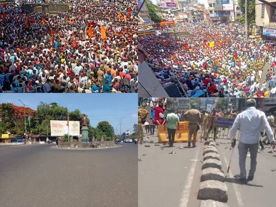 Kolhapur News: कोल्हापुरात शिवराज्याभिषेक दिनी लावण्यात आलेल्या आक्षेपार्ह स्टेटसमुळे आज (7 जून) हिदुत्ववादी संघटनेला पुकारलेला बंद आणि केलेल्या ठिय्या आंदोलनाला हिंसक वळण लागले. मंगळवारी (6 जून) दुपारी आक्षेपार्ह स्टेट्स आणि कोल्हापूर शहरात व्हायरल मेसेजवरुन परिस्थितीचा अंदाज असतानाही पोलीस यंत्रणेला हिंसक जमावाला पांगवण्यासाठी तब्बल अडीच तास झुंजावे लागले. कोल्हापूर पोलिसांच्या फौजफाट्यासह कोल्हापूर परिक्षेत्राचे आयजी सुनील फुलारी यांनाही रस्त्यार उतरावे लागले, यावरुन परिस्थितीचा अंदाज येतो. आक्षेपार्ह स्टेटस ठेवणाऱ्यांपैकी सहा जणांना अटक करण्यात आल्याची माहिती पालकमंत्री दीपक केसरकर यांनी दिली. मात्र, पोलीस अधीक्षक महेंद्र पंडित आणि विशेष पोलिस महानिरीक्षक सुनील फुलारी यांनी कोणताही आकडा सांगितला नाही.
