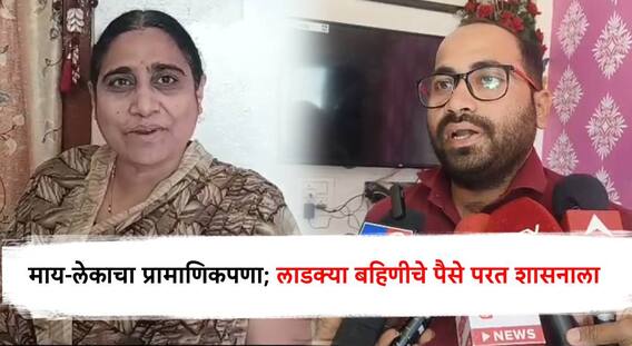 धुळे: राज्यामध्ये मुख्यमंत्री लाडकी बहीण योजनेच्या (Ladki Bahin Scheme) संदर्भात विविध माहिती समोर येत असताना धुळे तालुक्यातील नकाणे गावातील एका महिलेचा आणि तिच्या कुटुंबाचा या योजनेतून प्रामाणिकपणा समोर आला आहे. नकाणे गावातील रहिवाशी असलेल्या मुलाच्या नावे असलेल्या योगित खैरनार यांच्या खात्यात पैसे जमा झाल्यानंतर सदर महिलेने आणि तिच्या मुलाने हे पैसे शासनाला जमा केल्याचा हा प्रकार समोर आला आहे.