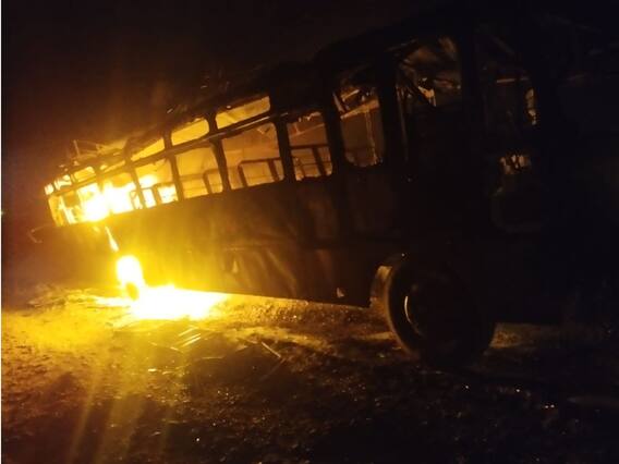 लातूर : लातूर (Latur) जिल्ह्यातील उमरदरा या गावात मुक्कामाची बस (Bus Fire) अज्ञातांनी जाळली. जळकोट तालुक्यातील उमरदरा या गावात मुक्कामी बस येत असते. काल मध्यरात्रीनंतर अज्ञातांनी ही बस पेटवून दिली. यावेळी बसमध्ये वाहक आणि चालक झोपले होते. त्यांनी कसाबसा स्वतःचा जीव वाचवला आहे. या घटनेत सुदैवाने जीवितहानी टळली. मात्र या आगीत संपूर्ण बस जळून खाक झाली आहे. ही बस पेटवण्याचं नेमकं कारण काय, कोणी पेटवली, याबाबत कोणतीही माहिती अजून समोर आलेली नाही. पोलीस या घटनेचे तपास करत आहेत.
