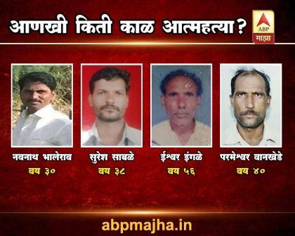 मुंबई : महाराष्ट्रातील कर्जमाफीचं लोण आता मध्य प्रदेशातही पोहोचलं आहे. मात्र तिथल्या आंदोलनाला हिंसक वळण मिळालं आहे. यामध्ये पोलिसांनी केलेल्या गोळीबारात 5 शेतकऱ्यांचा मृत्यू झाला आहे. तर दुसरीकडे महाराष्ट्रात आज 24 तासात तब्बल 4 शेतकऱ्यांनी आत्महत्या केली आहे. साताऱ्यातील पळशीमधील सुरेश शंकर साबळे यांनी खासगी सावकार आणि बँकेचे कर्ज असल्यानं विषारी औषध पिऊन आत्महत्या केली. तर नांदेडच्या हिमायतनगर तालुक्यातील पळसपूर इथं परमेश्वर वानखेडेंनी आत्महत्या केली. दुसरीकडे वर्ध्यातील ब्राह्मणवाड्यात ईश्वर बळीराम इंगळेंनी गळफास घेऊन जीवन संपवलं. याशिवाय येवल्यातल्या पिंपरीमध्ये कर्जबाजारीपणाला कंटाळलेल्या अवघ्या 30 वर्षांच्या नवनाथने मृत्यूला कवटाळलं आहे. शेतकऱ्यांच्या कर्जमाफीसाठी सध्या राज्यात आंदोलनं सुरु आहेत. त्यातच सरकारकडून कर्जमाफीसाठी आश्वासनं दिली जात आहेत. तर दुसरीकडे कर्जबाजारीपणामुळे शेतकरी आपली जीवनयात्रा संपवत आहेत. एकीकडे सरकारच्या अल्पकर्जधारक, अल्पभूधारक, अमुक सालापर्यंतचे, तमुक सालापर्यंतचे अशा चक्रात शेतकऱ्याचं आंदोलन लांबत चाललं आहे. त्यातच जुनी समिती, नवी समिती, असे घोळ घातले जात आहेत. तेव्हा राज्यातील शेतकऱ्यांच्या आत्महत्या कधी थांबणार, असा प्रश्न विचारला जात आहे.