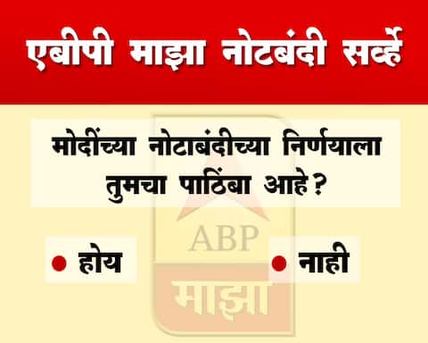 मुंबई:पंतप्रधान नरेंद्र मोदी यांनी पाचशे आणि हजार रुपयांच्या नोटा चलनातून रद्द करण्याचा निर्णय घेतल्यानंतर, देशभरात वादाची राळ उठली आहे. मात्र मोदींच्या या निर्णयाबद्दल जनतेचं नेमकं मत काय? हे जाणण्याचा प्रयत्न एबीपी माझा करत आहे. ऑनलाईन सर्व्हेच्या माध्यमातून आम्ही नागरिकांची मतं जाणून घेत आहोत. हा सर्व्हे सर्वांसाठी खुला आहे. (तुम्ही निवडलेल्या पर्यायावर क्लिक केल्यानंतर VOTE यावरही क्लिक करा)