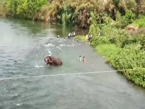 मिरवणुकीसाठी आणलेला हत्ती नदीतून बाहेरच येईना