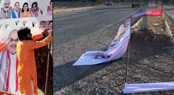 अज्ञातांनी फाडले अमित शहांच्या स्वागताचे बॅनर