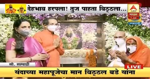 पंढरपूर : दरवर्षी लाखो वारकऱ्यांच्या उपस्थितीत होणारा आषाढी एकादशीचा सोहळा यंदा मोजक्या लोकांच्या उपस्थितीत पार पडला. आषाढीच्या निमित्ताने विठ्ठल-रखुमाईची महापूजा मुख्यमंत्री उद्धव ठाकरे यांनी सपत्नीक केली. यावेळी रश्मी ठाकरे, मंत्री आदित्य ठाकरे, सोलापूरचे पालकमंत्री दत्तात्रय भरणे, मिलिंद नार्वेकर उपस्थित होते. यंदा मानाचा वारकरी म्हणून श्री विठ्ठल-रुक्मिणी मंदिरात पहारा देणाऱ्या पाथर्डी येथील वीणेकरी विठ्ठल ज्ञानदेव बडे यांना मान मिळाला. आषाढ शुध्द एकादशी निमित्त श्री विठ्ठल रुक्मिणी मंदिरे समितीच्या वतीने विठ्ठल रुक्मिणी मातेच्या गाभाऱ्यास शोभेच्या जांभळ्या , पांढऱ्या व गुलाबी रंगाच्या फुलांनी सुंदर अशी सजावट करण्यात आली आहे. विठुराया,आषाढीपासून कोरोनाच्या संकटातून बाहेर काढ: मुख्यमंत्री यावेळी मुख्यमंत्री उद्धव ठाकरे म्हणाले. हा मान मला मिळेल असं स्वप्नातही वाटत नव्हतं. अशी पूजा करावी लागेल, असंही कधी वाटलं नव्हतं. मी माऊलीला साकडं घातलं आहे. आता आम्हाला चमत्कार दाखव, मानवानं हात टेकलेत. आपल्याकडे काही औषध नाही. असं तोंडाला पट्टी घालून कुठवर जगायचं. संपूर्ण आयुष्य अडकून गेलं आहे. आजपासून, या आषाढीपासून आम्हाला या कोरोनाच्या संकटातून बाहेर काढ. संपूर्ण जगाला पुन्हा आनंदी, मोकळं जीवन जगायला मिळू दे, असं साकडं घातलं असल्याचं मुख्यमंत्री म्हणाले. सावळं सुंदर विठुरायाचं रुप..भाविकांना पंढरपुरात येण्यास बंदी कोरोनाच्या प्रादुर्भावामुळे आषाढी यात्रेनिमित्त भाविकांना पंढरपुरात येण्यास बंदी आहे. यामुळे यंदा विठ्ठलाची दर्शन रांग रिकामी आहे. आषाढी एकादशीच्या पार्श्वभूमीवर 30 जूनपासून पंढरपुरात संचारबंदी लागू करण्यात आली आहे. पंढरपूर शहर आणि त्याच्या दहा किलोमीटर परिसरात 30 जूनपासून दोन जुलैच्या मध्यरात्रीपर्यंत संचारबंदी लागू असणार आहे. सर्वसामान्य नागरिकांनी आणि वारकऱ्यांनी या कालावधीत पंढरपुरात येऊ नये, असे आवाहन प्रशासनाने केले आहे. पालख्या एसटी बसने पंढरीला आज संत तुकाराम आणि संत ज्ञानेश्वर महाराज यांच्या पालख्या एसटी बसने पंढरीला पोहोचल्या. इतिहासात पहिल्यांदाच तुकाराम महाराजांच्या पादुका या एसटीतून पंढरीला आल्या. तत्पूर्वी पंचपदी अर्थात पाच भजन झाले अन् पादुका मंदिराच्या मुख्य सभा मंडपातून बाहेर पडल्या. मग मंदिराला प्रदक्षिणा घालून पादुका विठाई बसच्या पहिल्या बाकावर विराजमान झाल्या. पारंपारिक मार्गावरूनच ही एसटी पंढरीकडे मार्गस्थ झाली. या दरम्यान इनामदार वाडा, अनगडशाह बाबा दर्गा, चिंचोलीचं शनी मंदिर इथं आरती झाली. तर पुढे रोटी घाटात अभंग आरती पार पडली. मग मानाच्या क्रमातून सर्व बस रात्री पंढरीत आल्या. आषा