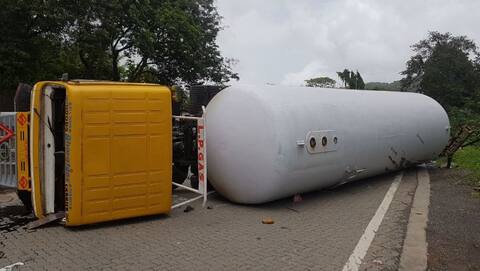 ठाणे: ठाण्यावरुन गुजरातला जाणारा एलपीजी गॅस टँकर घाटातील वळणावर उलटला. घोडबंदर रोडवर काजूपाडाजवळ हा अपघात झाला. अपघातानंतर टँकर चालक आणि क्लिनर फरार झाले आहेत. या अपघातामुळे घोडबंदर रोडवर प्रचंड वाहतूक कोंडी झाली आहे. माजीवडा ते घोडबंदर रोडवरील वाहतूक ठप्प झाली आहे. सध्या काशिमीरा पोलिस घटनास्थळी दाखल झाले आहेत. दरम्यान, या मार्गावरुन प्रवास करणं टाळावं असं आवाहन पोलिसांनी केलं आहे. ही वाहतूककोंडी फोडण्याचं काम पोलिस युद्धपातळीवर करत आहेत.