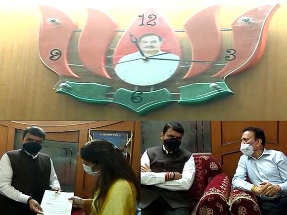 विरोधी पक्षनेते देवेंद्र फडणवीस आज जळगाव जिल्ह्याच्या दौऱ्यावर आहेत. त्यावेळी त्यांनी मुक्ताईनगरमधील रक्षा खडेसेंच्या घरी जाऊन त्यांची भेट घेतली. त्यावेळी फडणवीसांची रक्षा खडसेंसोबत बातचित झाली. त्यानंतर देवेंद्र फडणवीस, रक्षा खडसे आणि गिरीश महाजन मुक्ताईनगरमधील जिल्हा उपरुग्णालयात पोहोचलेले आहेत. या दौऱ्यादरम्यान, रक्षा खडसेंच्या घरात असलेल्या कमळाच्या आकाराच्या घडाळ्याचीच चर्चा रंगली आहे. काही दिवसांपूर्वी एकनाथ खडसे यांनी भाजपला रामराम करत राष्ट्रवादीचं घड्याळ हातात बांधलं आहे. परंतु, खासदार रक्षा खडसे या अजुनही भाजपमध्येच आहेत.