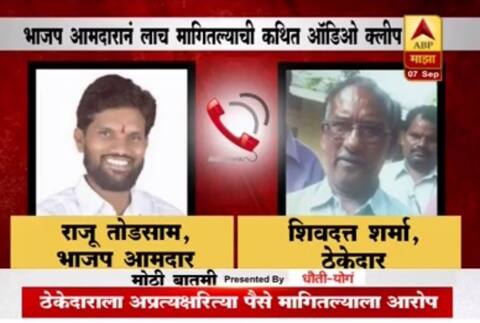 यवतमाळ : यवतमाळ जिल्ह्यातील आर्णी केळापूरचे भाजप आमदार राजू तोडसाम पुन्हा एकदा वादाच्या भोवऱ्यात सापडलेत आहेत. त्यांनी एका ठेकेदाराकडून अप्रत्यक्षरित्या लाच मागितल्याची कथित ऑडिओ क्लीप सोशल मीडियावर सध्या व्हायरल झाली आहे. विशेष म्हणजे यात पालकमंत्री मदन येरावार यांच्या नावाचाही उल्लेख आहे. यासंदर्भात आम्ही आमदार राजू तोडसाम यांची प्रतिक्रिया जाणून घेण्याचा प्रयत्न करत आहोत. पण अद्याप त्यांच्याशी संपर्क होऊ शकलेला नाही. दरम्यान, ठेकेदारानं भाजपच्या आमदारावर थेट लाचखोरीचा आरोप केल्यानंतरआमदार साहेबांवर काय कारवाई होते हे पाहणं महत्वाचं आहे. कथित ऑडिओ क्लीप : आमदार आणि ठेकेदारामधील संभाषण जसंच्या तसं भाजप आमदाराची लाचखोरी?, कथित ऑडिओ क्लिप व्हायरल आमदार : हॉलो शर्माजी... मी आमदार राजू तोडसाम ठेकेदार : हा बोला साहेब.... आमदार : फोन अशासाठी केला की, तुमची कामं व्यवस्थिती झाली वाटतं, मी मारली चक्कर, तुमची कामं चांगली झाली. ठेकेदार : हो साहेब... आमदार : बिल पण निघलं वाटतं पूर्ण? ठेकेदार : नाही बिल नाही निघालं अजून थोडं बाकी आहे. आमदार : थोडं बाकी आहे का? ठेकेदार : हा थोडा बाकी है... आमदार : निकालना नही क्या फिर? ठेकेदार : निकालना है साहेब... आमदार : फिर अधिकारी कुछ बोले नही क्या मेरे बारेमे? ठेकेदार : अभी कुछ बोले नही.. आमदार : नही बोले का? हा फिर अभी बोलेंगे मेरे बारेमे.. ये बिल निकालेनेके पहले बोलेंगे... काम होगा की नही. ठेकेदार : अरे सर तुम्हाला मी काय सांगू... माझ्या मुलाचा अपघात झाला आहे. सात महिन्यापासून मुलगा कोमात आहे. पुण्यात त्याचा अपघात झाला. मी परेशान आहे. हवं तर मी तुमच्या भागात काम करणार नाही. हवं तर मी मदनभाऊंना सांगतो. आमदार : मदनभाऊ कशाला सीएम साहेबांना सांगतो. मला मदनभाऊची धमकी देता का? ठेकेदार : मदनभाऊला सांगतो मी, त्यांनी जर सांगितलं तर मी करतो. आमदार : तुम्ही आमच्या एरियात काम करता. ठेकेदार : काम कितीचं आहे हे तुम्हालाही माहिती आहे. आमदार : काम कसं करता ते माहिती ना... लगावू को क्वॉलिटी कंट्रोलको... ठेकेदार : क्वॉलिटी कंट्रोलका रिपोर्ट दिया है. आमदार : ओ काम तो तुम चालाखीसे करते हो. ठेकेदार : चालाखीसे काम नही करते, ये हर चीजके लिये पैसे बाटेंगे तो अपनेको घर बेचना पडेगा. ये बात मे पेपरवालो को देता हूँ... मदन भाऊके पास जाता हूँ... साहेबांना सांगतो तुम्ही धमकी देता. आमदार : धमकी नाही देत... ठेकेदार : मग मला काय सांगता? माझ्या एरियात काम नाही करायचं म्हणून... एरिया खरेदी केला का तुम्ही? ओ शर्माजी धमकी नाही देत... काम नीट करा. ठेकेदार : काम चांगलंच केलं आहे. उगाचच अधिकारी पेमेंट देत नाही मला... तुम्हाला पैसे दिलं तर सगळं बरोबर आणि पैसे नाही दिले तर कामाची क्वॉलिटी बरोबर नाही. आमदार : मला काही फरक ना