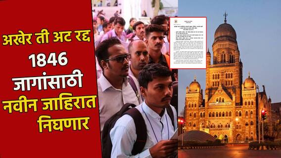 बीएमसीकडून आता सुधारित शैक्षणिक अर्हतेसह, नवीन जाहिरात प्रसिद्ध करुन येत्या पंधरा दिवसांच्या आत भरती प्रक्रिया पुन्हा सुरु होणार असल्याची माहिती मुंबई महापालिका प्रशासनाने दिली आहे. तसेच, सध्या अर्ज केलेल्या उमेदवारांनी नव्याने अर्ज करण्याची आवश्यकता नाही, त्यांचे अर्ज पुढील भरती प्रक्रियेत ग्राह्य धरले जातील,असेही महापालिका प्रशासनानं स्पष्ट केलं आहे. तसेच, मुंबई महापालिकेच्या जाहिरातीनंतर विविध स्तरांवरुन आलेल्या सूचना व मागण्यांचा सकारात्मक विचार करुन बृहन्मुंबई महानगरपालिका प्रशासनाने हा निर्णय घेतल्याची माहिती एका पत्रकाद्वारे देण्यात आली. विशेष म्हणजे बीएमसीच्या अधिकृत ट्वविटर हँडलवरुनही याबाबतचे परिपत्रक शेअर करण्यात आलं आहे.