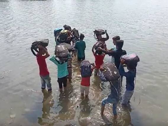 Jalgaon News : जळगाव (Jalgaon) जिल्ह्यातील पारोळा तालुक्यातील पिंपरी प्रा उत्राण (Pimpri Pra Utran) गावाला तिन्ही बाजूनं पुराच्या पाण्याचा वेढा दिला आहे. या पुराच्या पाण्यामुळं वाहतुकीचा मोठा प्रश्न निर्माण झाला आहे. पिंपरी प्रा उत्राण गावातील विद्यार्थी मोंढाळा गावात शिक्षणासाठी जातात. मात्र, पाण्यामुळं मोंढाळा गावात जाण्यासाठी आता रस्ताच नाही. त्यामुळं गेल्या दोन महिन्यापासून पिंपरी प्रा उत्राण या गावचे 70 ते 80 विद्यार्थी शाळेत जाऊ शकले नाहीत. हा धक्कादायक प्रकार समोर आल्यानं खळबळ उडाली आहे.