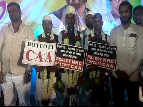 सोलापूरतील मिलन फाउंडेशनच्यावतीने सामूहिक विवाह सोहळ्याचे आयोजन करण्यात आलं होतं. यावेळी नागरिकत्व दुरुस्ती कायदा रद्द करण्यात यावा अशी मागणी देखील केली नव वर-वधु यांनी केली. सोलापुरातील पानगल हायस्कूल परिसरात रविवारी संध्याकाळी हा विवाह सोहळा पार पडला. यावेळी शहर काझी मुफ्ती अमजद अली काझी हे देखील उपस्थित होते. नागरिकत्व सुधारणा कायदा लागू झाल्यापासूनच सोलापुरात या कायद्याच्या विरोधात आंदोलने सुरु आहेत. विविध संघटनांच्यावतीने मोर्चे, रॅली, धरणे करत कायद्याचा विरोध करण्यात आला. मात्र या अनोख्या पद्धतीने केलेल्या आंदोलनाने सर्वांचेच लक्ष वेधलं आहे.
