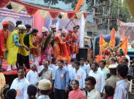 पालखी निघाल्यावर चित्ररथ मिरवणुकीला प्रारंभ झाला. झांज पथक, ढोल पथक, वारकऱ्यांचे भजनी पथक, बँड, सनई-चौघडे चित्ररथ मिरवणुकीत सहभागी झाले होते. ढोल पथकातील तरुणीचा ढोल वाजविण्याचा जोश उपस्थितांची दाद मिळवून गेला. आग्र्याची सुटका, सिद्धी जोहरच्या वेढ्यातून बाहेर पडण्याचा प्रसंग, अफजल वध, शिवजन्म सोहळा, गुन्हेगारांना शिक्षा देणारे न्यायप्रिय शिवाजी महाराज, शत्रूंच्या महिलांनाही मानाची वागणूक देणारे शिवाजी महाराज, अफजल वधानंतर दिल्ली आणि विजापूर येथे उडालेला हाहा:कार असे नानाविध जिवंत प्रसंग चित्ररथ देखाव्याद्वारे सादर करण्यात आले.