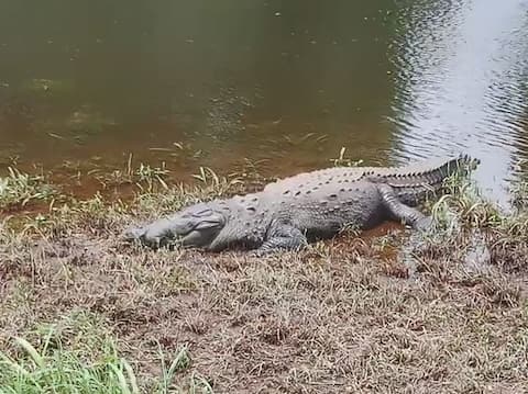 सांगली : कृष्णा नदी पात्रात सांगलीतील पद्माळे गावाजवळ 12 ते 15 फुटी मगरींचं आज सकाळी नागरिकांना दर्शन झालं. कित्येक वेळ ही मगर नदी काठी येऊन निपचित पडली असल्याचं कॅमेऱ्यात कैद झालं. सध्या कृष्णा नदीची पाणी पातळी वाढल्याने मोठ्या प्रमाणावर मगरी नदी पात्राबाहेर पडत आहेत. यामुळे पद्माळे गावातील नागरिक भयभीत झाले असून नागरिकांना नदी काठी असलेल्या शेतात जाणंही मुश्कील झालं आहे. कृष्णा नदीची पाणी पातळी वाढली आहे, तर काही ठिकाणी पाणी पात्राबाहेर आलं आहे. त्यामुळे मगरी पात्राबाहेर येत आहेत. लोकांनी नदी काठी असलेल्या शेतात जाणं टाळावं, असं आवाहन वन विभागाकडून करण्यात येत आहे. पळूस तालुक्यातील सूर्यगाव येथेही परवा नदी शेजारील असलेल्या शेतात गेल्या दोन दिवसांपासून मगरींचे वारंवार एकाच ठिकाणी दर्शन होत होतं. या शेतात दोन दिवस मगरीचा ठिय्या असल्याने शेतकऱ्यांमध्ये मगरीची दहशत पसरली आहे. या ठिकाणी मगरीने अंडी घातली असण्याचा अंदाज गावकऱ्याकडून वर्तवला जात आहे. या कृष्णा नदीकाठावर वारंवार होण्याऱ्या या मगरीच्या दर्शनामुळे संपूर्ण कृष्णा नदीकाठी भीतीचं वातावरण निर्माण झाले आहे. दरम्यान, 20 एप्रिल रोजी पळूस तालुक्यातील ब्रम्हणाळ येथे मगरीने 14 वर्षांच्या मुलाला नदीत ओढलं होतं. नंतर या मुलाचा मृतदेह सापडला होता.