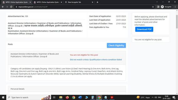 महाराष्ट्र राज्याच्या माहिती व जनसंपर्क महासंचालनालयामध्ये विविध पदांसाठी 42 पदांच्या भरतीची जाहिरात महाराष्ट्र लोकसेवा आयोगाद्वारे काढण्यात आली होती. गट-अ वरिष्ठ, गट-अ कनिष्ठ आणि गट-ब अशा श्रेणीचे ही 42 पदं असून यासाठी सोमवार 23 जानेवारी ही अर्ज करण्याची शेवटची तारीख होती. विशेष म्हणजे उपरोक्त सर्व 42 पदांसाठी सारखीच शैक्षणिक आणि अनुभवाची पात्रता ठेवण्यात आली होती. शैक्षणिक पात्रतेमध्ये पत्रकारितेमध्ये पदवी किंवा पदविका ही अट ठेवण्यात आली आहे. अनेक विद्यापीठांमध्ये पत्रकारितेचे पदविका, पदवी व पदव्युत्तर पदवी असे कोर्सेस चालविले जात आहेत. विशेष म्हणजे केंद्रीय लोकसेवा आयोगाच्या जाहिरातीमध्ये वरील सर्व कोर्सेस एकमेकांना पर्याय म्हणून दर्शविण्यात येतात. मात्र महाराष्ट्र लोकसेवा आयोगानुसार पदवी आणि पदविका हिच शैक्षणिक पात्रता महत्वाची असून यापेक्षा मोठी शैक्षणिक पात्रता आयोगाला मान्य नसल्याचे आरोप विद्यार्थ्यांनी केला आहे.