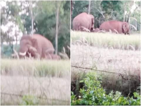 बेळगाव : हेरे (ता. चंदगड) येथे टस्कर हत्तीच्या कळपाने आज सायंकाळी साडेपाच वाजता शेतकरी संजय पेडणेकर यांच्या भिमहोळ नावाच्या शेतात धुडगूस घातला. यात त्यांच्या ऊस, भात व नाचनी पिकांचे मोठ्या प्रमाणात नुकसान केले. हत्तीच्या कळपाने पेडणेकर यांच्या शेतातील तीन एकरातील ऊसामध्ये धुडघूस घातल्याने लाखो रुपयांचे नुकसान झाले आहे. पेडणेकर यांच्या मुलाने ओरडून हत्ती आल्याचे सांगितल्याने वडील व मुलगी कृष्णल वेळीच ऊसातून बाहेर आल्याने मोठा अनर्थ टळला.