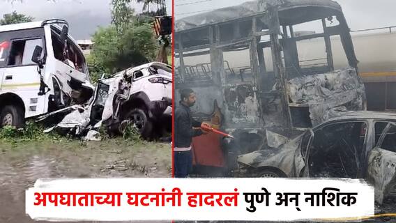 राज्यात एकीकडे पावसाने जनजीवन विस्कळीत झालं असताना, दुसरीकडे पुणे व नाशिकमध्ये भीषण अपघाताच्या दोन घटना घडल्या आहेत. दोन विविध ठिकाणच्या या अपघातात चार जणांचा मृत्यू झाला आहे. नाशिक जिल्ह्याच्या दिंडोरी रस्त्यावरील आकराळे फाट्याजवळ बस आणि कारमध्ये भीषण अपघाताची घटना घडली. या अपघातानंतर दोन्हीही गाड्यांनी अचानक पेट घेतल्यामुळे सगळ्यांची दमछाक झाली होती. बसने पेट घेतल्यानंतर अग्निशमन दलाच्या कारला पाचारण करण्यात आले, पण तोपर्यंत आगीत बस आणि कर जळून खाक झाली. या अपघातात कारमधील दोघे जागीच ठार झाल्याची माहिती आहे.
