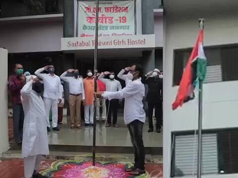 सध्या कोरोनाचा काळ सुरू आहे. कोरोनाच्या विषयी अनेक नागरिकांच्या मनात अनेक प्रकारच्या भीती आहे तसा सामाजिक न्यूनगंड असल्याच ही पाहायला मिळत आहे. कोरोनाचा रुग्ण होणं हा काही गुन्हा नाही आणि जरी आपण कोरोना पॉझिटिव्ह आलो तरी त्यातून वेळीच उपचार केले तर आपण बरे होऊ शकतो हा संदेश देण्यासाठी कोरोनायोद्धांच्या हस्ते ध्वजारोहण केले.