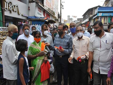 कोरोनाचा संसर्ग रोखण्यासाठी महानगरपालिकेच्यावतीने माझे कुटुंब माझी जबाबदारी या मोहिमेंतर्गत नो मास्क नो एन्ट्री ही मोहिम गतीमान केली आहे. मास्क वापरा, सामाजिक अंतर ठेवा यासाठी सर्वदूर जनजागृती मोठ्या प्रमाणात होत असतानाही काही नागरीकांनी कोरोना संसर्गाचे गांभिर्य घेतलेले दिसत नाही, उलट कित्तेक नागरिक विनामास्क रस्त्यावरुन फिरताना आढळतात, या पार्श्वभूमीवर महानगरपालिका आणि चेंबर ऑफ कॉमर्स, महाव्दाररोड व्यापारी असोशिएशन, कापड व्यापारी संघ अशा शहरातील विविध व्यापारी असोसिएशन आणि संघटनांच्या सहकार्याने विनामास्क फिरणाऱ्या नागरीकांवर आज दंडात्मक कारवाई न करता त्यांची गांधीगिरी पद्धतीने मास्क आणि गुलाबपुष्प देऊन स्वागत करण्याचा अभिनव उपक्रम राबविला.