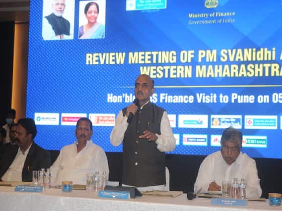 पुण्यातील हॉटेल शेरेटन ग्रँड येथे केंद्रीय अर्थ राज्यमंत्री डॉ.भागवत कराड यांच्या अध्यक्षतेखाली प्रधानमंत्री स्वनिधी आणि पुणे विभागीय बँकर्स समितीची बैठकीत आयोजित करण्यात आली होती. त्यावेळी ते बोलत होते. या बैठकीला खासदार उदयनराजे भोसले, खासदार श्रीरंग बारणे, खासदार रणजितसिंह नाईक निंबाळकर, आमदार गोविंदराव केंद्रे उपस्थित होते. मागील आठ वर्षात गरिबांच्या आर्थिक उन्नतीसाठी तीन स्तरावर प्रयत्न करण्यात येत असल्याचे कराड म्हणाले. बँक खाते नसलेल्यांचे खाते उघडणे, विमा योजनेचा सर्वसामान्यांना लाभ देणे आणि अर्थ सहाय्यापासून वंचित असलेल्यांना ते उपलब्ध करुन देण्याचे प्रयत्न करण्यात येत असल्याचे कराड म्हणाले.