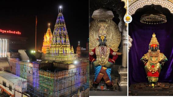 Diwali Pandharpur Vitthal Rukmini Mandir : आज नरकचतुर्दशी निमित्त परंपरेप्रमाणे श्री विठ्ठल आणि रुक्मिणीला (Vitthal Rukmini) ठेवणीतील हिरेजडित अलंकार परिधान करण्यात आले आहेत. दीपावलीनिमित्त विठ्ठल मंदिराला (Vitthal Rukmini Mandir) आकर्षक विद्युत रोषणाई ( attractive electric lighting) देखील करण्यात आली आहे. विठ्ठल भक्तांनी मंदिरात रांगोळ्याच्या पायघड्याही घातल्या आहेत. विठ्ठल आणि रुक्मिणीला दागिने परिधान केल्यानं देवाचं रुप 'सावळे सुंदर रुप मनोहर' या उक्तीप्रमाणे अधिकच सुंदर दिसत आहे.