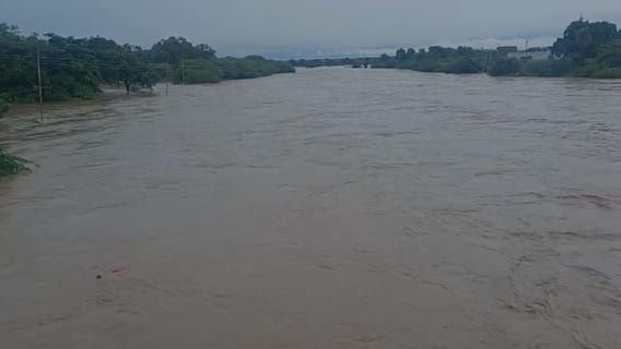Hingoli flood: हिंगोलीत पावसाने चांगलीच दणादाण उडवली असून स्कूलबस पाण्याखाली गेल्या आहेत. नागरिकांच्या घरात गुडघाभर पाणी शिरल्याने अनेकांचे संसार उघड्यावर आले आहेत. नद्या नाले ओढे ओसंडून वाहत आहेत. रस्त्यावर प्रचंड पाणी साठल्याने रस्ते दिसेनासे झाले आहेत. जिल्ह्यात नागरिकांची मोठी तारांबळ उडाली असून बचाव पथक तसेच प्रशासन पातळीवर बचाव कार्य सुरू करण्यात आले आहे. गुडघाभर पाण्यातून नागरिकांना वाट काढणे अवघड होऊन बसलंय. नदी, नाल्यांना पूर आल्यानं रस्त्यावर मोठ्या प्रमाणात पाणी साठलं आहे. या भागात परिस्थिती गंभीर असून नुकसान पाहणीसाठी प्रशासनाकडून आढावा घेतला जातोय.