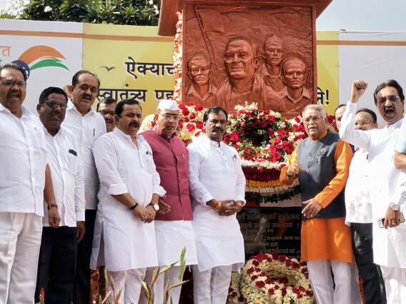 Hyderabad Liberation Day : हैदराबाद मुक्ती संग्राम (Marathwada Mukti Sangram Din) दिनी सकाळच्या सुमारास मुख्यमंत्र्यांच्या उपस्थितीत कार्यक्रम पार पडला. मुख्यमंत्री एकनाथ शिंदे यांच्या हस्ते औरंगाबादमध्ये आज हैदराबाद मुक्ती संग्राम दिनानिमित्त ध्वजारोहण करण्यात आले. मात्र 9 वाजता होणारं हे ध्वजारोहण 7 वाजताच उरकण्यात आले आहे. त्यामुळे याचा निषेध म्हणून शिवसेनेकडून पुन्हा एकदा मुख्यमंत्र्यांनी ध्वजारोहण केलेल्या ठिकाणी अभिवादन करण्यात आले. यावेळी शिवसेनेचे नेते चंद्रकांत खैरे (Chandrakant Khaire) (Ambadas Danve) आणि विरोधी पक्षनेते अंबादास दानवे यांची उपस्थिती पाहायला मिळाली.