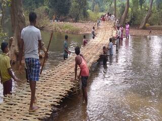 गडचिरोली : जिल्ह्यातील भामरागड तालुक्यातील महाराष्ट्र आणि छत्तीसगड राज्याच्या सीमेवर असलेल्या भुसेवाडा आणि गुंडेनूर येथील ग्रामस्थांनी श्रमदानातून बांधलेला बांबूचा पूल सध्या चर्चेत आहे. ग्रामपंचायत मल्लमपोडुर अंतर्गत असलेल्या भुसेवाडा गावाच्या 2 किलोमीटर आधी एक बारमाही वाहणारा नाला आहे. तर लाहेरी गावापासून 4 किलोमीटरवर अंतरावर गुंडेनूर नाला आहे. या नाल्याला बाराही महीने पाणी असल्याने नाल्यावर पूल बांधण्याची मागणी गेल्या अनेक वर्षांपासून होत आहे. मात्र याकडे प्रशासनाच्या वतीने दुर्लक्ष करण्यात आलं आहे .