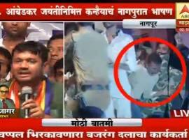 नागपूर: दिल्लीतील जवाहरलाला नेहरू विद्यापीठ अर्थात जेएनयूतील छात्र संघाचा अध्यक्ष कन्हैया कुमारचं आज नागपूरमध्ये भाषणादरम्यान अभूतपूर्व गोंधळ पाहायला मिळाला. भषण सुरु असतानाच कन्हैयाच्या दिशेने एका व्यक्तीन चप्पल भिरकावली. चप्पल फेकणारा व्यक्ती अभाविपचा कार्यकर्ता असल्याचं समजतं आहे. सुरुवातीपासूनच कन्हैयाच्या भाषणात अडथळा आणण्याचा प्रयत्न केला गेला. सुरुवातीला जोरदार घोषणाबाजी करण्यात आली. त्यानंतर पोलिसांनी घोषणा देणाऱ्या कार्यकर्त्यांना हॉलमधून बाहेर काढलं. त्यानंतर पुन्हा एकदा एका कार्यकर्त्यानं घोषणाबाजी केली. त्यालाही बाहेर काढण्यात आलं. त्यानंतर कन्हैयानं भाषणाला सुरुवात केली. त्यानं किमान 5 मिनिटं भाषण केलं. या पाच मिनिटांमध्ये कन्हैयानं भाजप आणि संघावर जोरदार टीका केली. कन्हैयानं संघावर टोमणा मारल्यानंतर हॉलमध्ये उपस्थित असणाऱ्या एका अभाविपच्या कार्यकर्त्यानं कन्हैयाच्या दिशेने चप्पल भिरकावली. त्यानंतर तात्काळ पोलिसांनी त्या व्यक्तीला ताब्यात घेतलं. या सगळ्या प्रकारामुळे सभागृहात एकच गोंधळ निर्माण झाला होता.