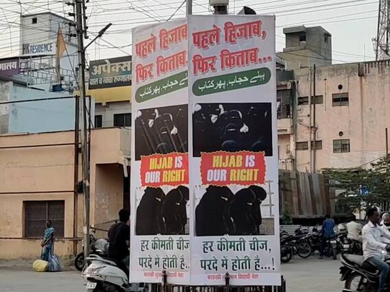 बीड: हिजाब विरुद्ध भगवा असा वाद कर्नाटकमध्ये पेटलाय. त्यामुळे कर्नाटक मधल्या शाळा आणि महाविद्यालय तीन दिवसांसाठी बंद ठेवण्यात आल्या आहेत. मात्र या वादाचे पडसाद केवळ कर्नाटक राज्यापुरते मर्यादित राहिले नाहीत तर थेट महाराष्ट्रात पोहोचले आहेत. बीडमध्ये आता हिजाबच्या समर्थनार्थ एमआयएम पक्षाच्या वतीनं बॅनर लावण्यात आले आहेत.
