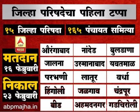 मुंबई: राज्यात होणाऱ्या 10 महानगरपालिका आणि नागपूर वगळता 25 जिल्हा परिषद निवडणुकीच्या तारखा जाहीर झाल्या आहेत. 21 फेब्रुवारीला दहा महापालिकांसाठी मतदान होणार असून 23 फेब्रुवारीला मतमोजणी होईल. तर 25 जिल्हा परिषदांसाठी दोन टप्प्यात मतदान होणार आहे. 16 फेब्रुवारीला मतदाना पहिला टप्पा पार पडणार असून यात 15 जिल्ह्यांचा समावेश असेल. तसंच दुसऱ्या टप्प्यासाठी 21 फेब्रुवारीला मतदान होणार आहे. महापालिका आणि जिल्हा परिषदांचा निकाल 23 फेब्रुवारीलाच जाहीर होणार आहे. राज्याचे मुख्य निवडणूक आयुक्त जे एस सहारिया यांनी आज पत्रकार परिषद घेऊन राज्यातील महापालिका आणि जिल्हा परिषद निवडणुकीचा कार्यक्रम जाहीर केला. जिल्हा परिषदेसाठी मतदानपहिला टप्पा 15 जिल्हा परिषद आणि 165 पं. समितीसाठी 16 फेब्रुवारी मतदान औरंगाबाद, जालना, परभणी, हिंगोली, बीड, नांदेड, उस्मानाबाद, लातूर, जळगाव, अहमदनगर, बुलडाणा, यवतमाळ, वर्धा, चंद्रपूर, गडचिरोली, दुसरा टप्पा 11 जिल्हा परिषद आणि 118 पं. समितीसाठी - 21 फेब्रुवारीला मतदान रायगड, रत्नागिरी, सिंधुदुर्ग, पुणे, सांगली, सातारा, सोलापूर, कोल्हापूर, नाशिक, अमरावती, गडचिरोली, निकाल - 23 फेब्रुवारी सर्व दहा महापालिकांसाठी 21 फेब्रुवारीला मतदान आणि 23 फेब्रुवारीला निकाल