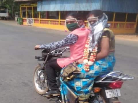 सिंधुदुर्ग : कोकणात एप्रिल, मे महिन्यात लग्नसराईचा हंगाम असतो. मात्र कोरोनाच्या पार्श्वभूमीवर लॉकडाऊन काळात लग्नसराईचा हंगाम संपत चालल्यामुळे सावंतवाडीतील इन्सुली गावात शासनाच्या नियमांचे उल्लंघन होऊ न देता अनोख्या पद्धतीने आपला विवाह सोहळा पार पडला. विशेष म्हणजे या विवाह सोहळ्याला वधू-वरांच्या घरातील कोणीच उपस्थित नव्हते. फक्त नवरदेवाचा एक मित्र आणि भटजी मिळून अवघ्या चार जणांच्या उपस्थितीतच हा सोहळा संपन्न झाला. या विवाहितांची वरात दुचाकीवरुनचं दारात आली. दरम्यान या लग्न सोहळ्यापूर्वी दोन्ही विवाहितांनी सावंतवाडी तहसीलदार राजाराम म्हात्रे यांची परवानगी घेतली होती. यावेळी शासनाच्या नियमांचे पालन केल्यास विवाहाला आपली काहीच हरकत नसल्याची माहिती म्हात्रे यांनी दिली.