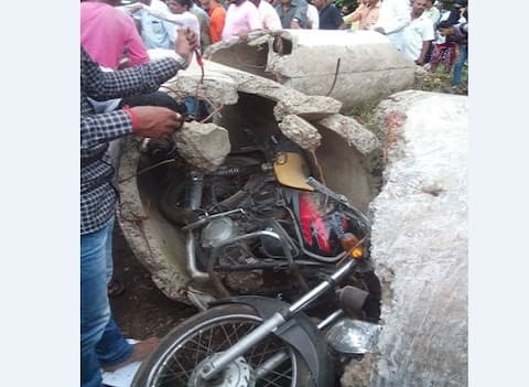 कोल्हापूर महापालिकेने ड्रेनेज दुरुस्तीसाठी रस्ता खोदला होता. रस्त्यावर ठेवलेल्या सिमेंटच्या पाईपमध्ये बाईक घुसली