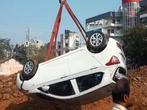 बायकोला ड्रायव्हिंग शिकवणं नवऱ्याला महागात, कार आठ फूट खड्ड्यात