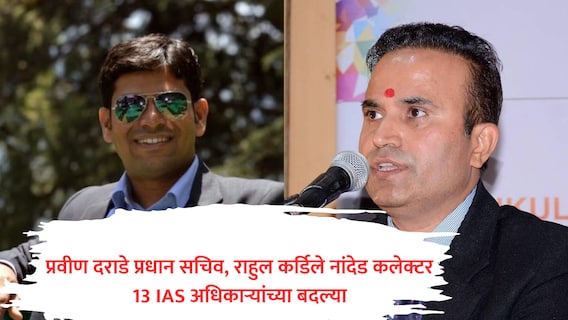 मुंबई : राज्यात नवीन सरकार आल्यानंतर बदल्यांचा धडाका सुरूच आहे. आताही राज्यातील 13 वरिष्ठ आयएएस अधिकाऱ्यांच्या बदल्यांचे आदेश (Maharashtra IAS Transfer) जारी करण्यात आले आहेत. त्यामध्ये प्रवीण दराडे ( Pravin Darade IAS) यांची बदली सहकार आणि वस्त्रोद्योग खात्याच्या प्रधान सचिवपदी करण्यात आली आहे. डॉ. प्रशांत नरनावरे यांची राज्यपालांचे सचिव म्हणून बदली करण्यात आली आहे. तर सिडकोचे सहव्यवस्थापकीय संचालक राहुल कर्डिले (Rahul Kardile IAS) यांची महिन्याभरात तिसऱ्यांदा बदली करण्यात आली आहे. राहुल कर्डिले यांची आता नांदेड जिल्हाधिकारीपदी बदली करण्यात आली आहे.