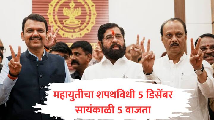 Maharashtra New CM : महायुतीचं अखेर ठरलं! 5 डिसेंबरला संध्याकाळी 5 वाजताचा शपथविधीचा मुहूर्त पक्का, ठिकाणही निश्चित