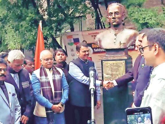 Anna Bhau Sathe Moscow : रशियात (Russia) भारतीय संस्कृती (Indian Culture) जपल्याचा गर्व वाटत आहे असे गौरवोद्गार उपमुख्यमंत्री देवेंद्र फडणवीसांनी (Devendra Fadnavis) काढले. लोकशाहीर अण्णाभाऊ साठे (Anna Bhau Sathe) यांच्या कार्याचा रशियाकडून गौरव करण्यात आला, मॉस्कोमध्ये त्यांच्या पुतळ्याचं अनावरण राज्याचे उपमुख्यमंत्री देवेंद्र फडणवीस (Devendra Fadanvis)यांच्या हस्ते काल करण्यात आले. त्यावेळी ते बोलत होते. रशियातील मॉस्को येथील ‘मार्गारिटा रुडामिनो ऑल रशिया स्टेट लायब्ररी फॉर फॉरेन लिटरेचर’ च्या आवारात लोकशाहीर, साहित्यरत्न अण्णा भाऊ साठे यांच्या पुतळय़ाचे अनावरण पार पडले. विधानसभा अध्यक्ष राहुल नार्वेकर, भारतीय सांस्कृतिक संबंध परिषदेचे अध्यक्ष डॉ. विनय सहस्रबुद्धे, आमदार सुनील कांबळे, प्रा. संजय देशपांडे यांच्यासह आदी मान्यवर या कार्यक्रमास उपस्थित होते.