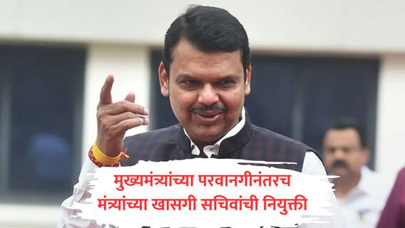 मुंबई : राज्यातील मंत्र्यांचे खातेवाटप झाल्यानंतर आता त्यांच्या खासगी सचिव, पीए आणि विशेष कार्यकारी अधिकाऱ्यांनी आणि स्टाफच्या नेमणुकीची लगबग सुरू झाली आहे. पण या नेमणुका आता केवळ मंत्र्यांच्या मर्जीने होणार नाहीत. मुख्यमंत्री देवेंद्र फडणवीसांच्या कार्यालयातून नावांना संमती मिळाल्यानंतरच या नेमणुका होणार आहेत.